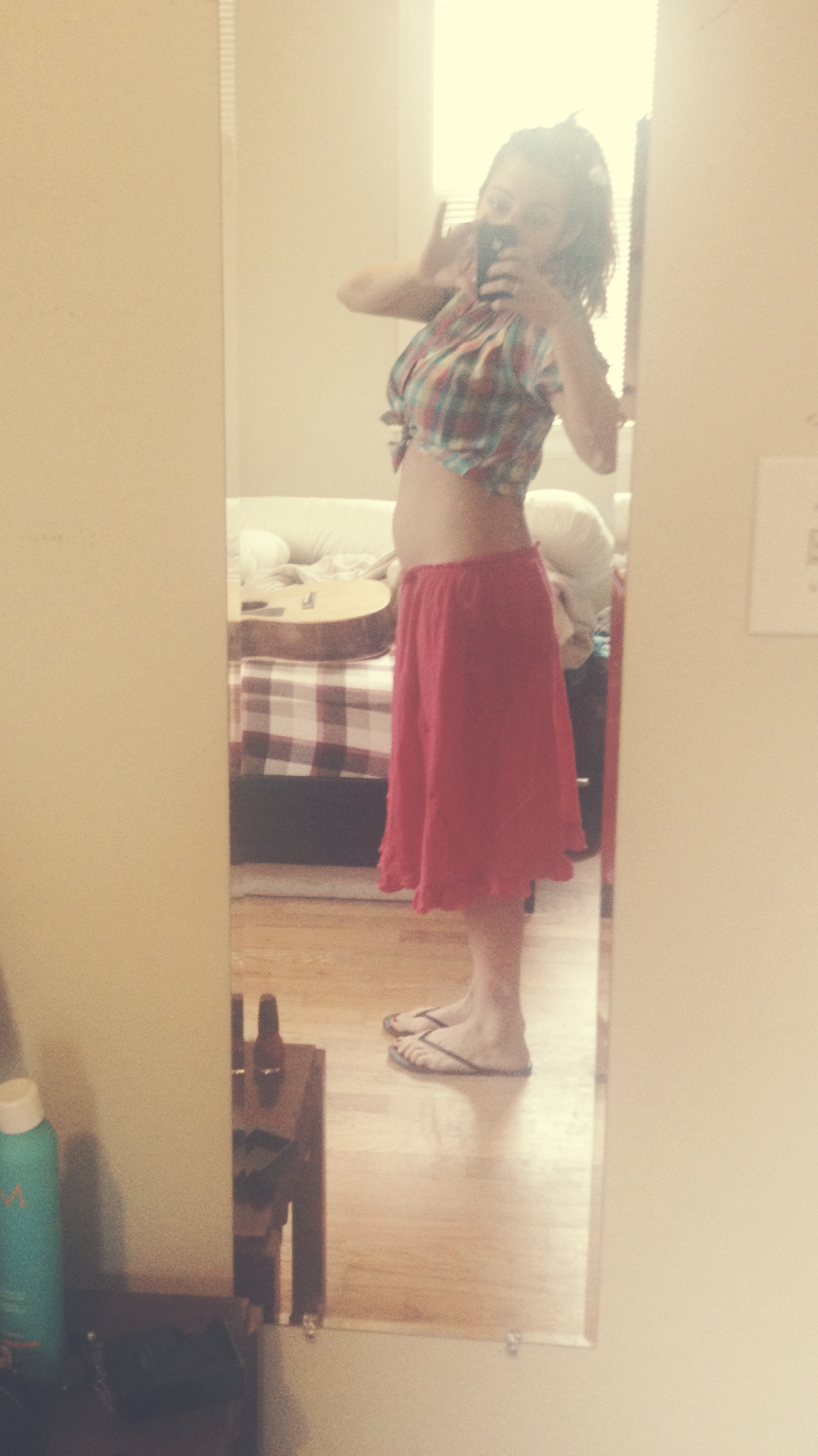 So there’s that. From the front I don’t look ready to pop I suppose…but here I am almost 38 weeks from the side!